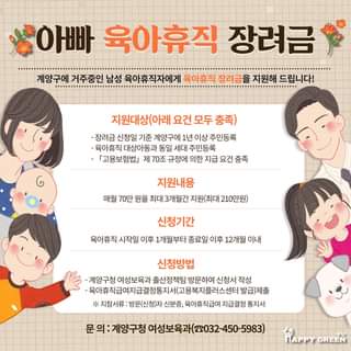 인천 계양구에 거주하시면서, 육아 휴직 중인 아빠들은 300만 원 꼭 챙기셔야 합니다.