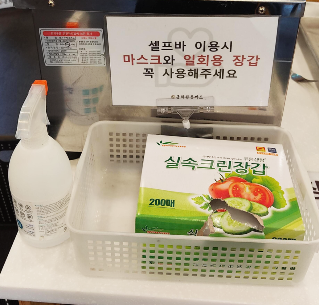 어떤 손님분이 비닐장갑 없이 셀프바를 이용하려고 하니, 주인분이 일회용 비닐장갑 사용을 부탁하는 모습을 봤다.