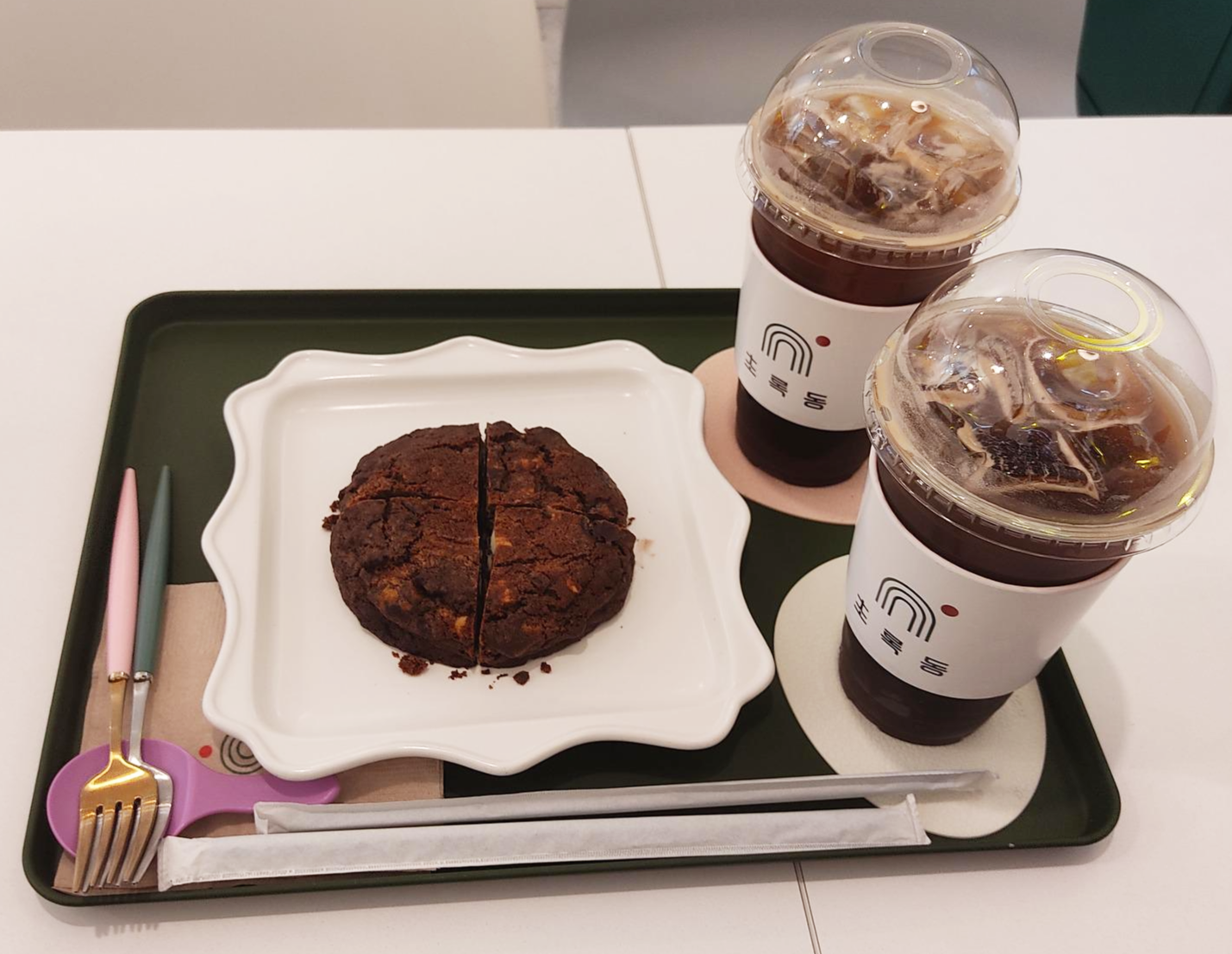 맛있어 보이는 꾸덕초코와 커피 2잔을 시켰다.