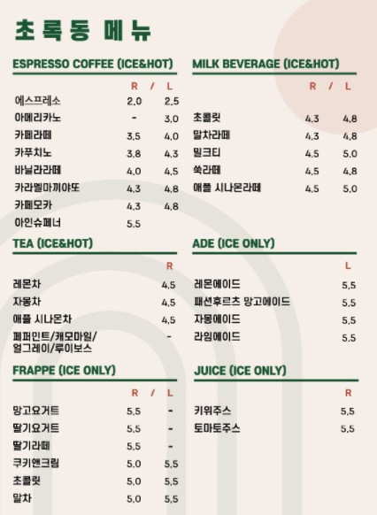 초록동 내부는 작은 테이블 6~8개 정도가 놓여 있었다.