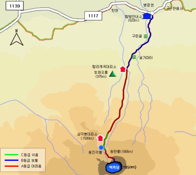 총 8.7㎞ [관음사지구야영장→삼각봉대피소(6㎞)→정상(동능 2.7㎞)]